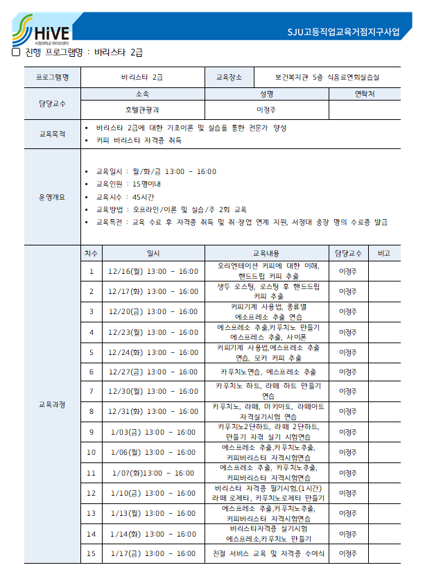 -바리스타 2급 과정의 강의 일시가 아래와 같이 변경 되오니 확인 부탁드립니다.
