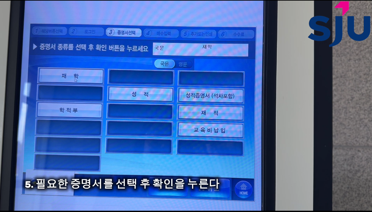 ⑤ 필요한 증명서를 선택 후 확인을 누른다. > 필요한 만큼의 수량 선택