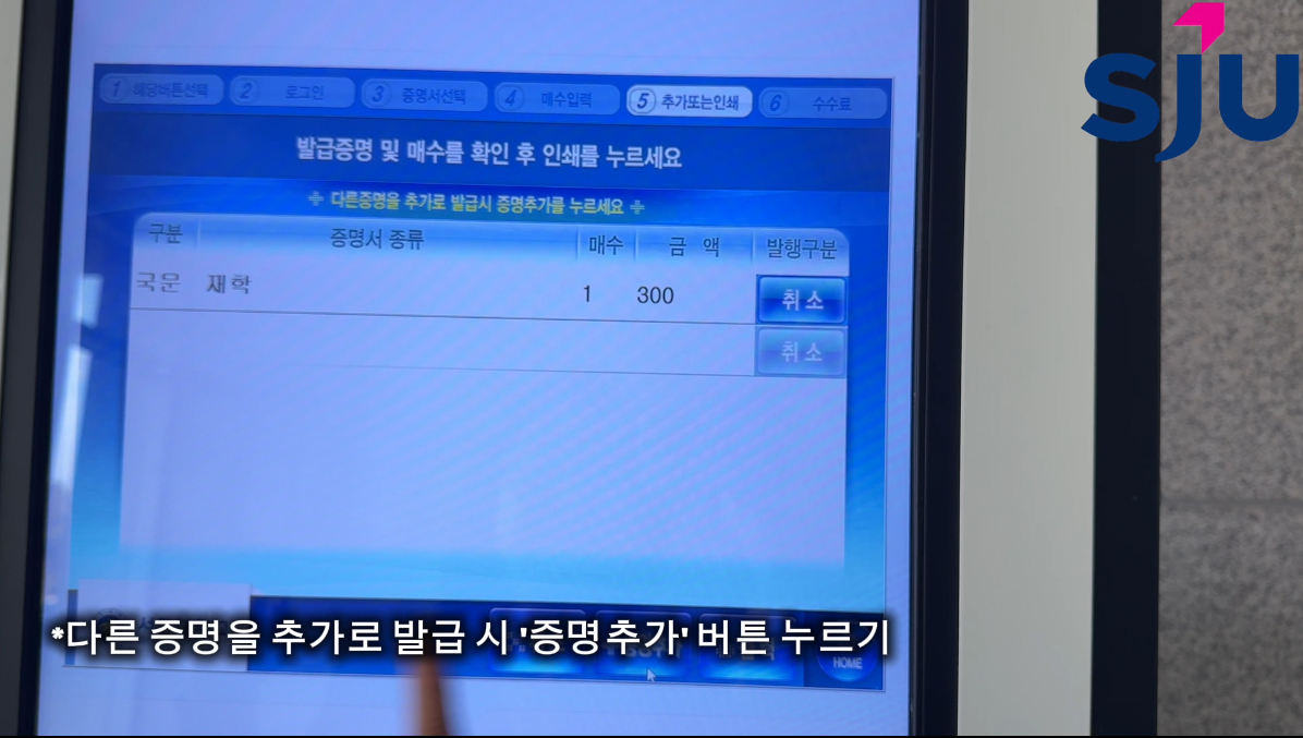 *다른 증명을 추가로 발급 시 ‘증명추가’버튼 누르기