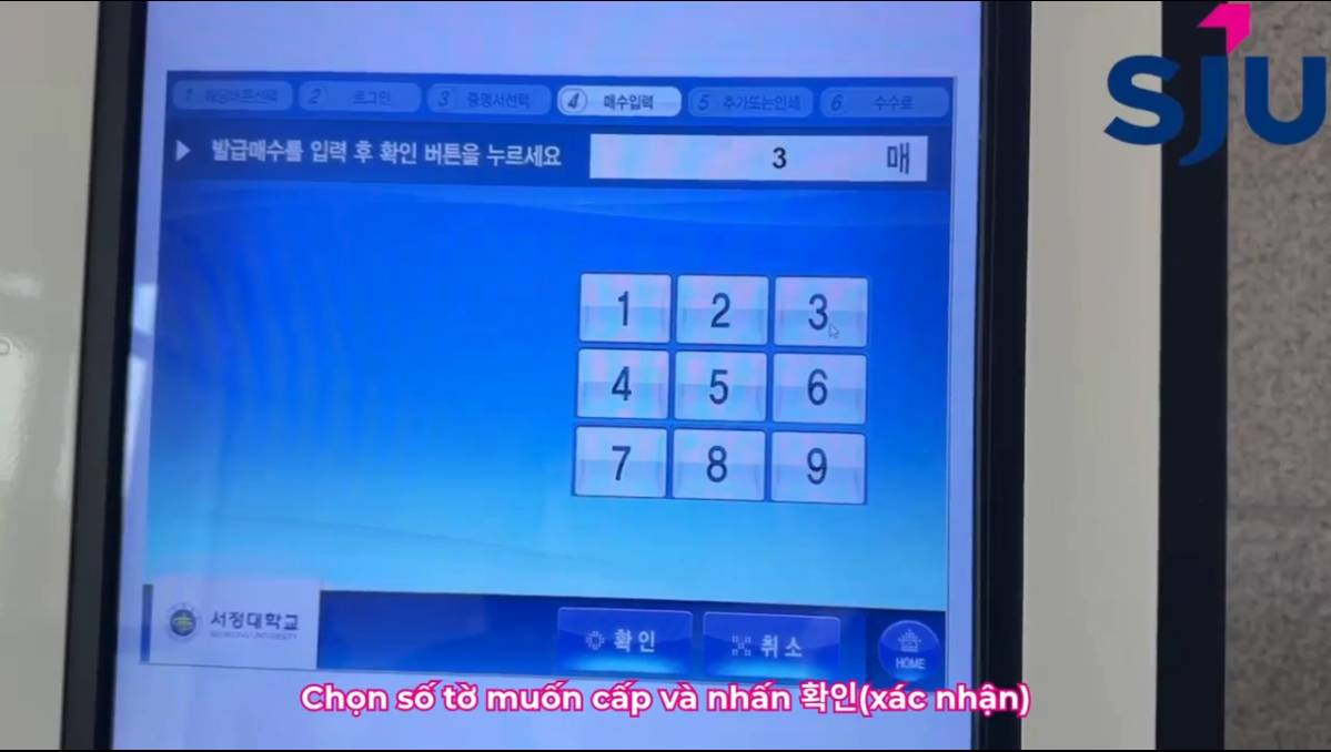 >Chọn số tờ muốn cấp và nhấn 확인