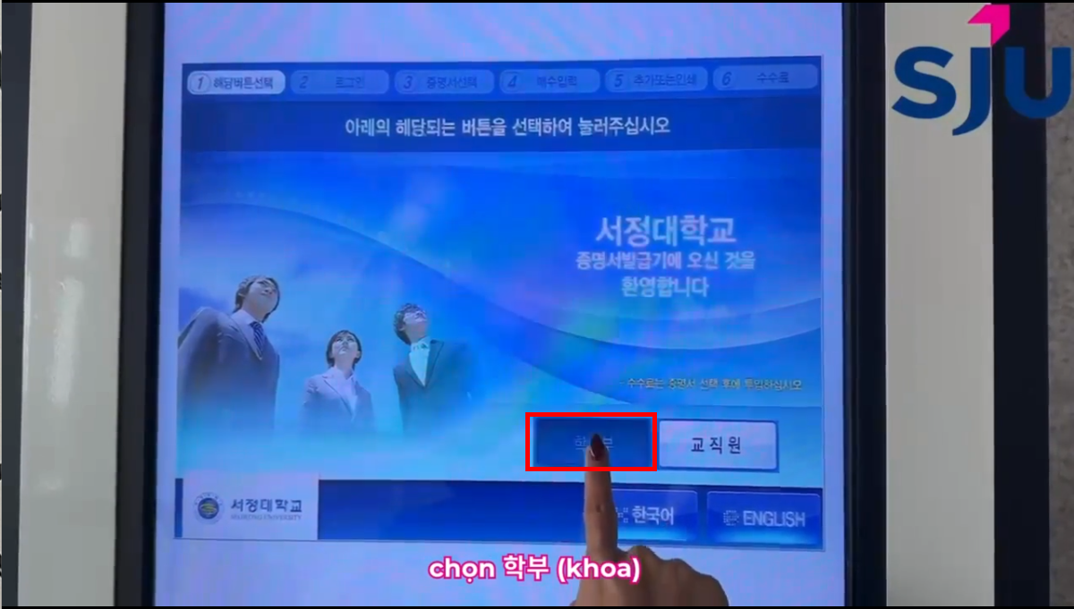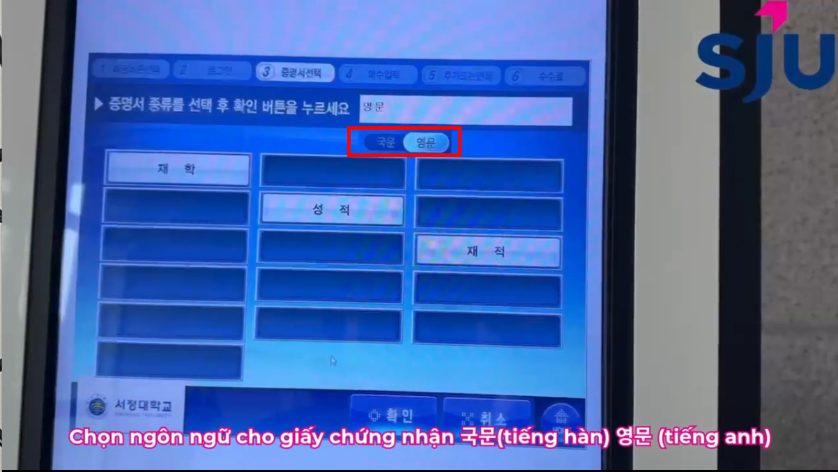 : Máy cấp giấy chứng nhận có tại: Tầng 1, tòa số 3 서관관 / Tầng 3, tòa số 3 본관 / Tầng L, tòa quốc tế 별관