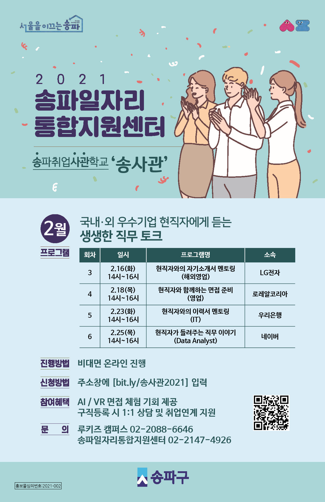 ★ 문의 : 송파 일자리통합지원센터(02-2147-4926)
