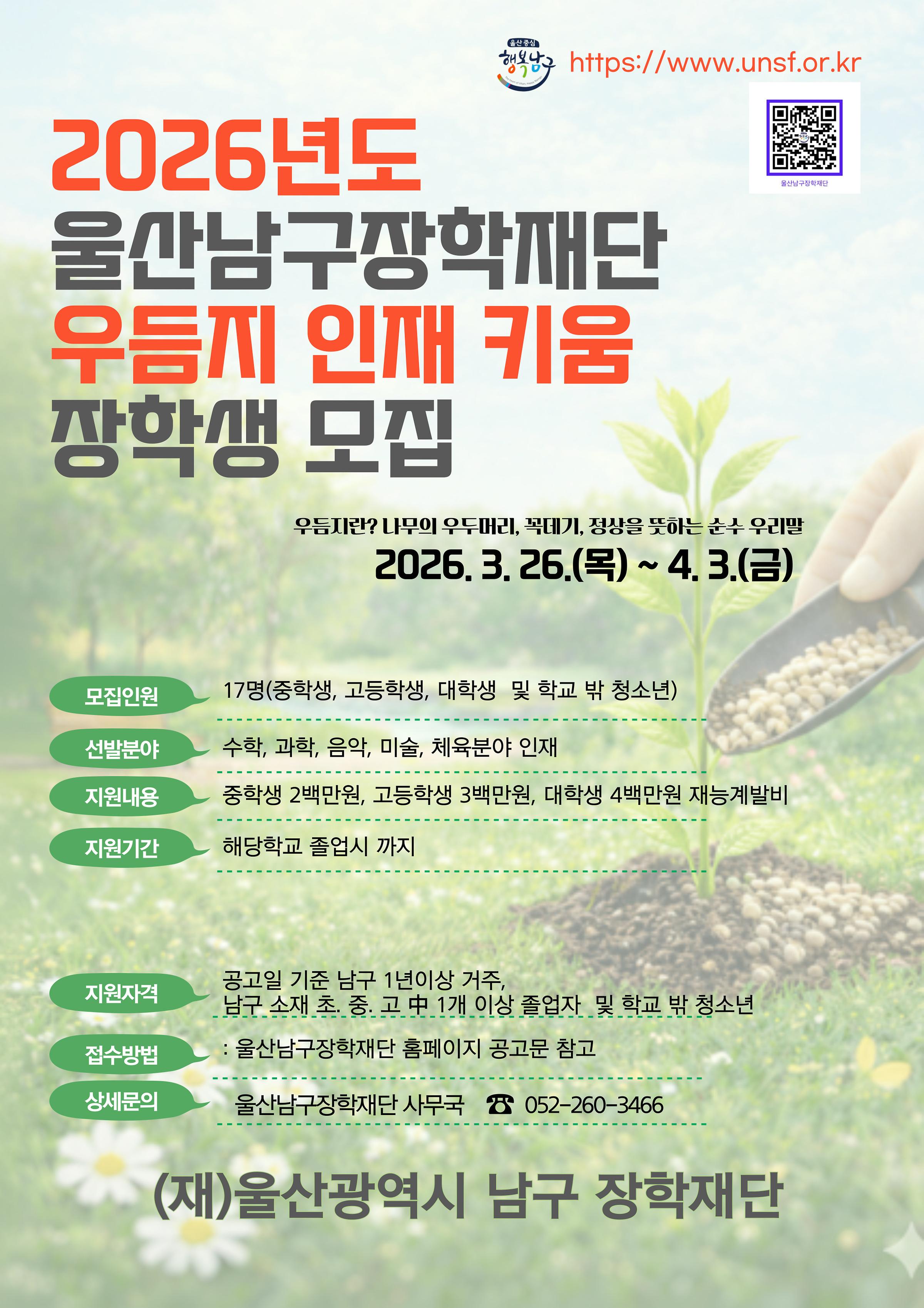- (재) 울산광역시남구 장학재단 : 052-260-3466