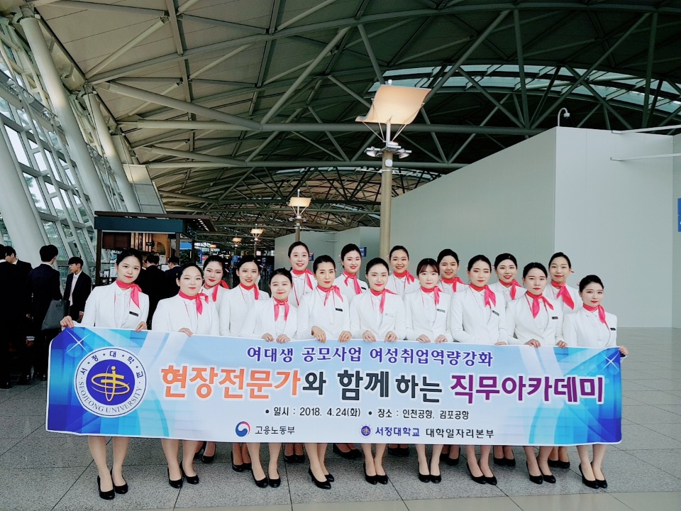 2018년 4월 24일 항공관광과에서는 인천국제공항과 김포공항에서의 현장직무체험 교육을 실시하였습니다. 항공관광과 교수님들과 일학년 42명 전원이 참여한 이번 현장직무체험 교육에서는 한국공항공사 김태한 본부장님의 항공산업 현황과 미래에 대한 특강과 인천국제공항, 김포공항에 대한 시설견학과 직무체험 교육이 이루어져 항공관광과 신입생들의 전공에 대한 이해와 실무능력을 키우는 좋은 기회가 되었습니다. |